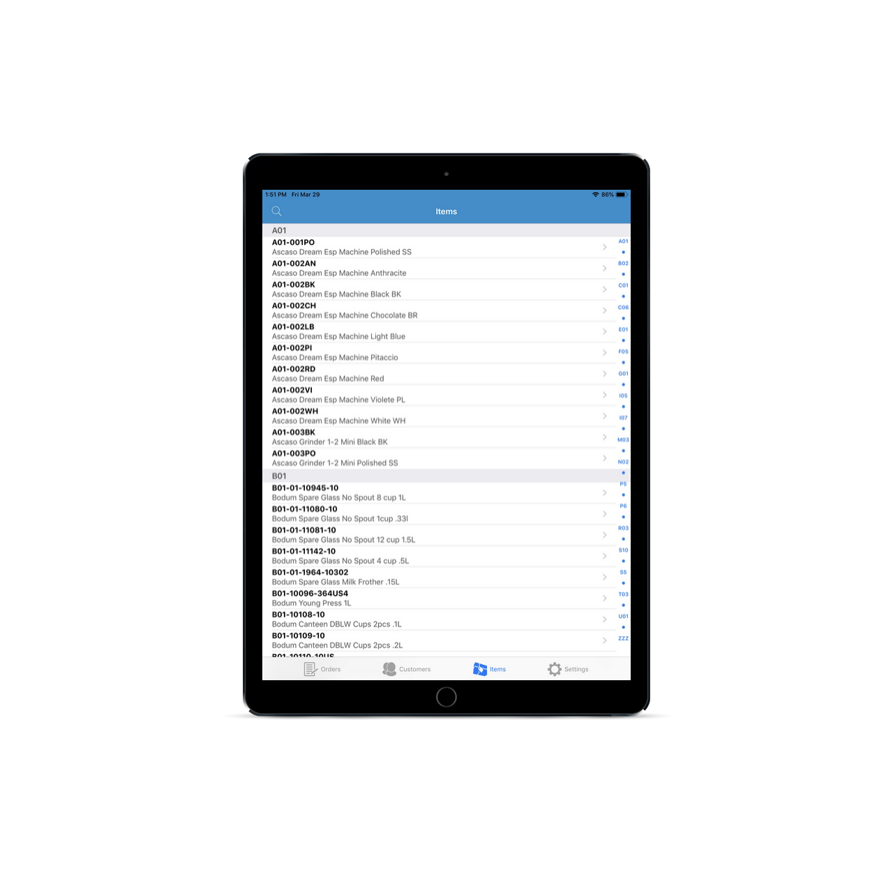 Mobile Orders for Adagio pairs with ePortal to allow salespeople to collect and send orders from the field using their iPads or iPhones.