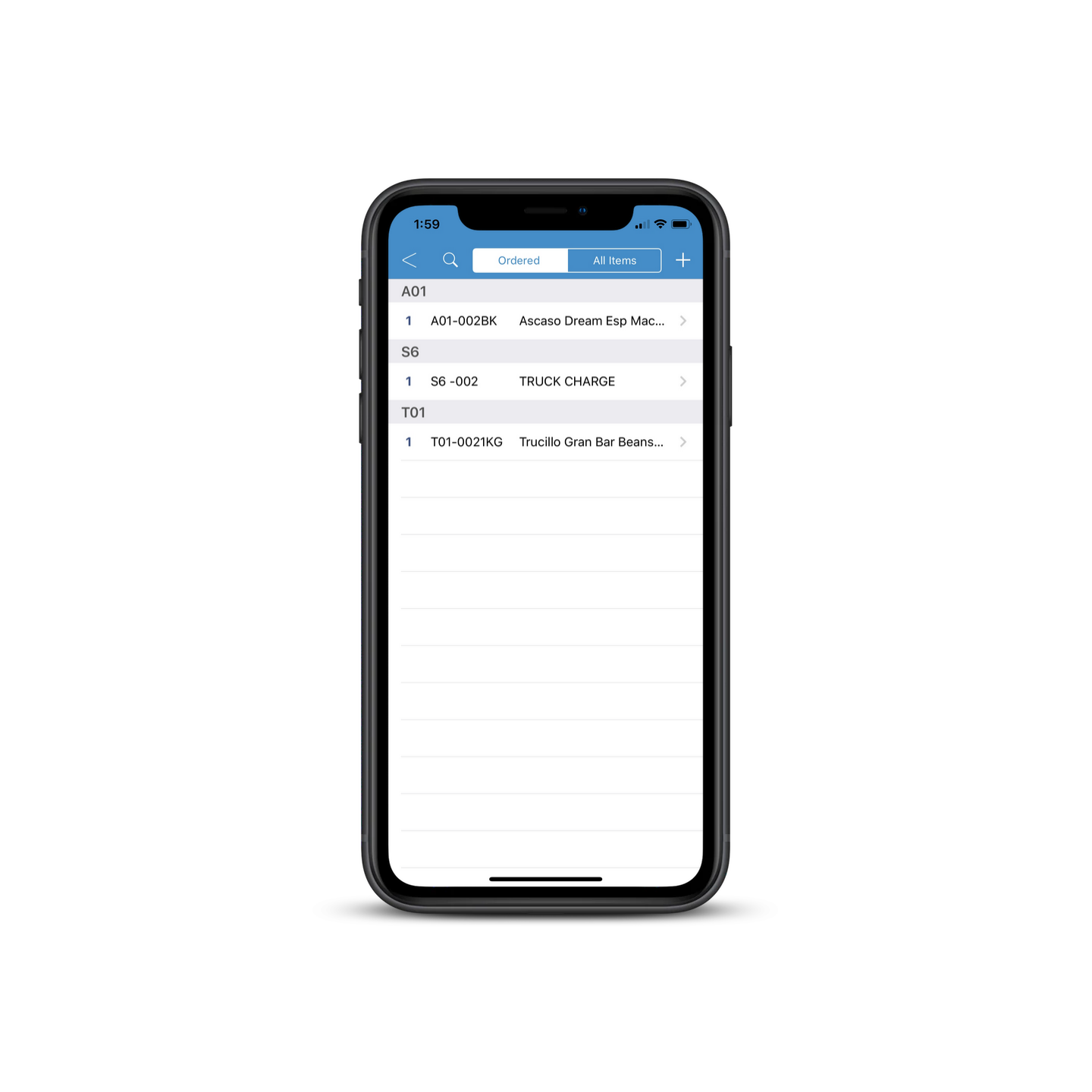 - Search allows the salesperson to look up items, customers and orders quickly by description or code.